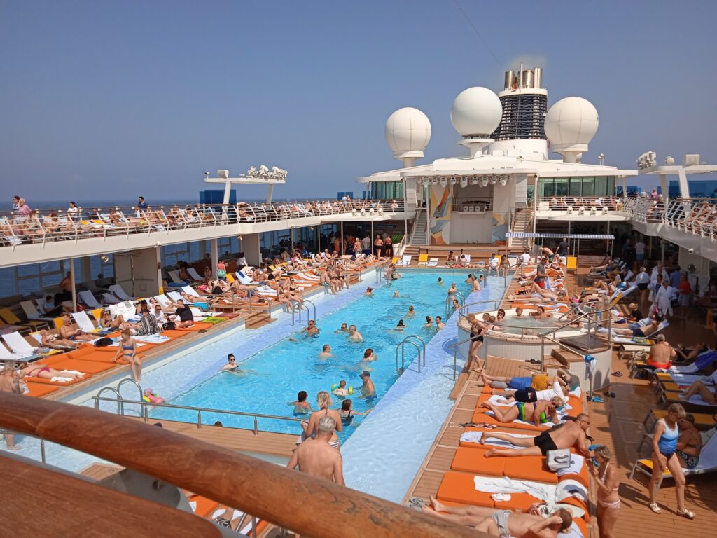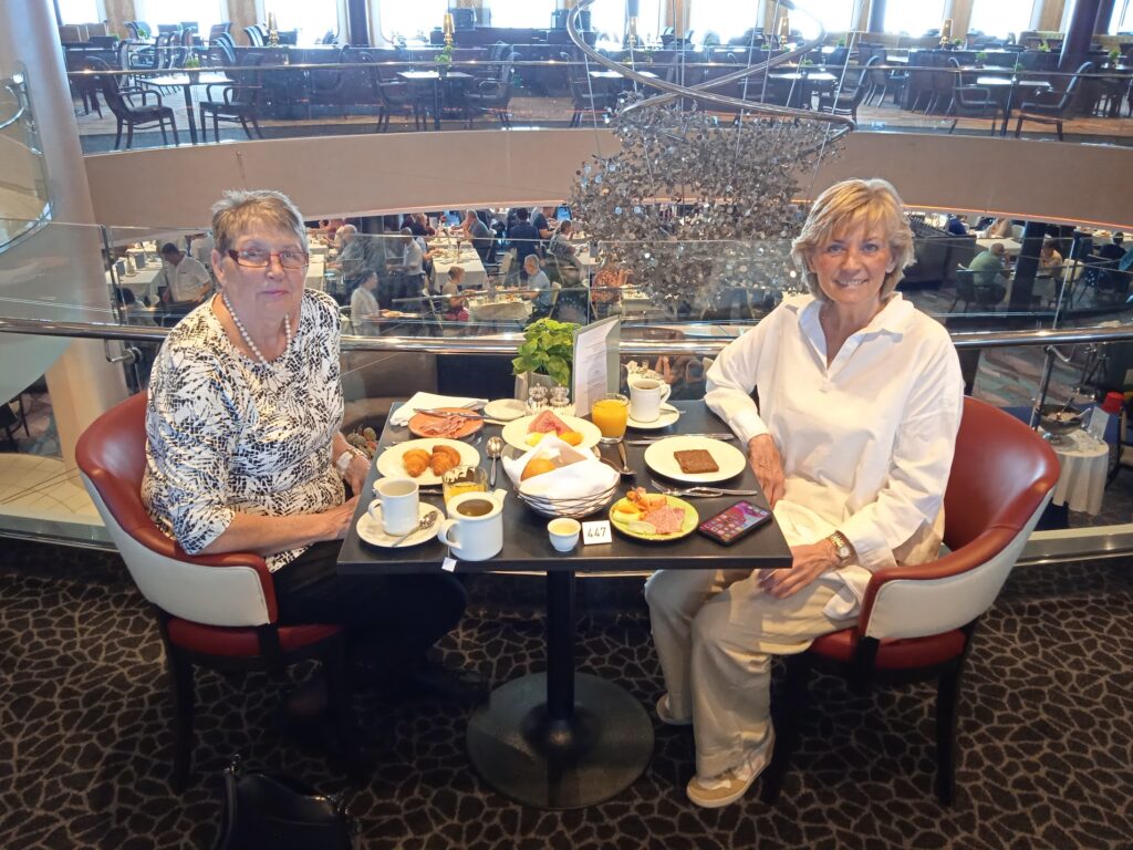 6.6.2025 – Seetag, Zeit das Schiff zu erkunden und zu sonnen. Wir sollten jeden Tag auf unserem Balkon bis gegen 13.00-14.00 Sonne haben. Heute haben wir im Atlantik Mediterran unser Frühstück zu uns genommen und es wird nur gefaulenzt, da Morgen schon gegen 8.00 unser Ausflug losgeht und Angela mehr als eine Stunde Schönheitspflege benötigt und gemütlich gefrühstückt werden soll.