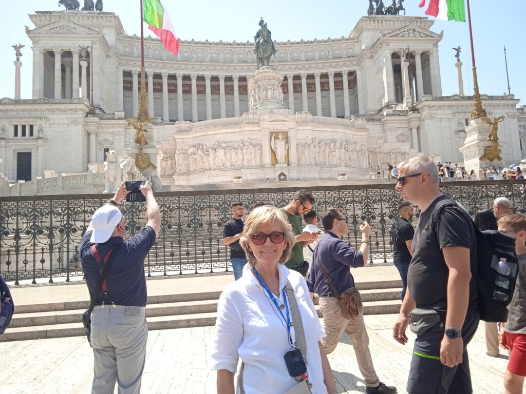 Für Angela klingelt der Wecker um 5.40. Nachdem Frühstück ging es ab zum Bus zu unserem Ausflug ‚Ein Tag in Rom‘. Ca. 9km Fußmarsch waren ‚angedroht‘ ,was für meinen vor ca. 8 Tagen gebrochenen Zeh nicht erholsam sein sollte. Ich hatte größte Bedenken, dass ich das Pensum bewältigen konnte (aber es hat geklappt). Pünktlich fuhr der Bus mit Christina, die nur wenig Englisch und kein Deutsch sprach, nach Rom. Nach rund 1 Stunde 20 Minuten kamen wir in Rom an.