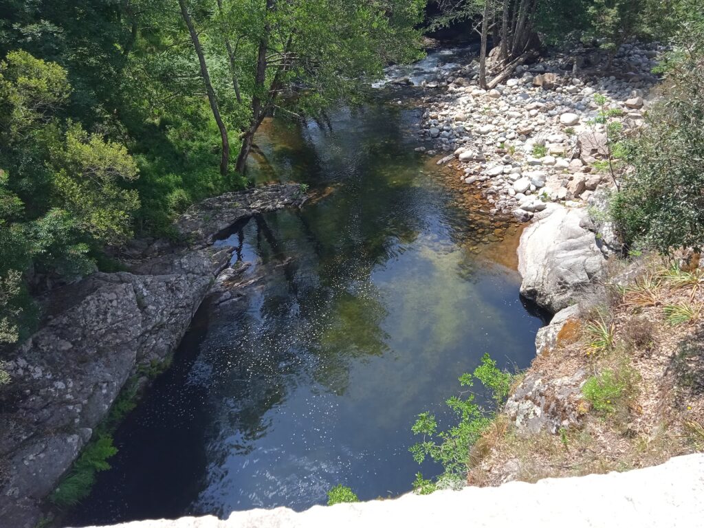 8.6.2025 – Ajaccio/Korsika/Frankreich. Heute stand der Ausflug ‚Korsische Landschaft – die Prunelli Schlucht‘ mit einer dreistündigen Panoramafahrt auf dem Programm. Nicht ganz so früh wie gestern startete unser Ausflug, gegen 9.45. Wir entfernten uns von der Küste und fuhren durch das grüne mit Macchia bewachsene Innere der Insel. In einem Lokal, einer Auberge, machten wir bei Schinken, Käse und Brot sowie einheimischen Honig Rast. In dieser Region wimmelte es nur so von Schwammspinnern und Prozessionsspinnern. Sie haben ganze Wälder abgevespert. Auch in unserem Lokal sah man viele dieser Raupen.