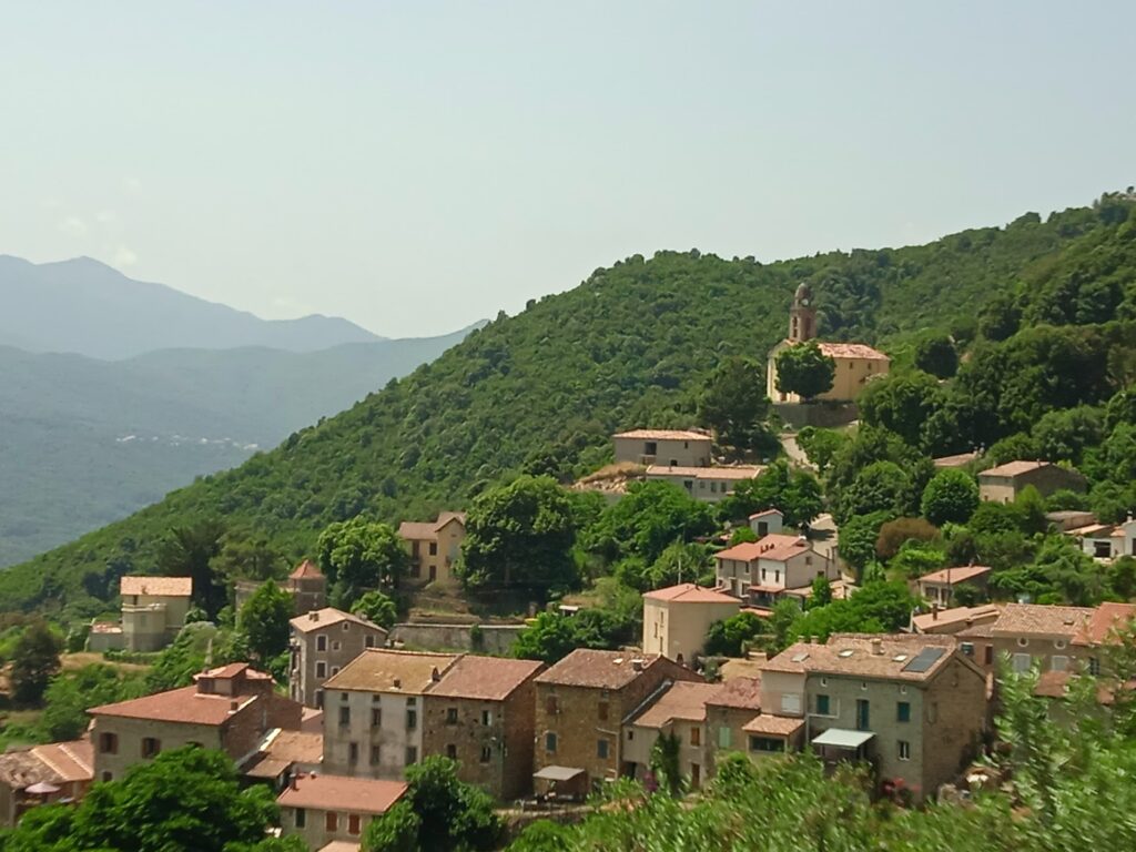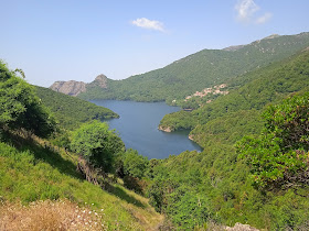 Nach einer guten Dreiviertelstunde ging es kleine Straßen entlang mit wunderschönen Ausblicken z.B. auf Tolla. Der Ort liegt oberhalb des vom Fluss Prunelli gespeisten Stausees.