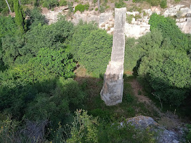 10.6.2025 – Tarragona/Spanien. Unser heutiger Ausflug ‚Römisches Erbe um und in Tarragona‘ startete um 8.00. Auch heute ist es morgens schon drückend heiß. Tarragona ist eine relativ kleine Stadt (mit rund 140.000 Einwohner) und hat eine lange römische Geschichte. Als Erstes parken wir auf einem Rastplatz an der Autobahn und machen von dort eine rund 20minütige Wanderung zum Steinbruch von Mèdol. Es können diverse Schnittvorderseiten, teilweise abgetragene Blöcke und insbesondere der so genannte Agulla von Mèdol, ein 20 m hoher Monolith, besichtigt werden.