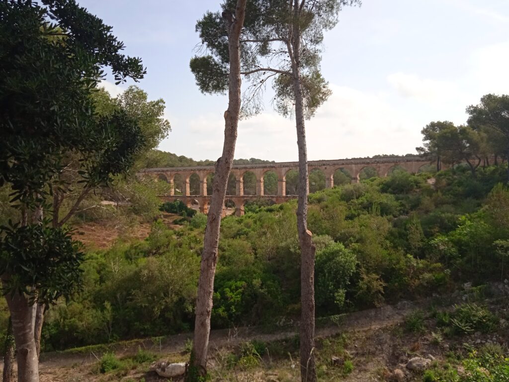 Dann fahren wir weiter zum nächsten Autobahnparkplatz, wo die Teufelsbrücke, ein Äquadukt steht. Er überspannt di Senke des Barranc de les Arcs und von dort aus wurde das Wasser vom Fluss Fracoli ins antike Tarraco(Tarragona) geleitet. Es zählt zu den besterhaltenen antiken Aquädukten und ist das größte in Katalonien. Der Fluss ist fast ausgetrocknet.