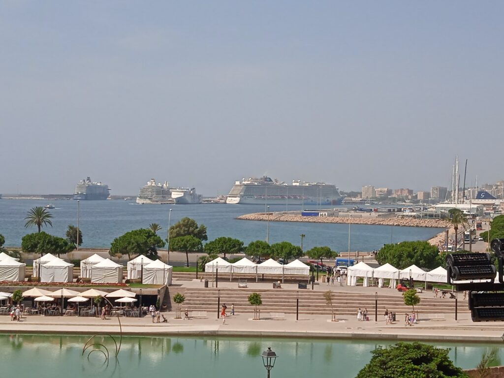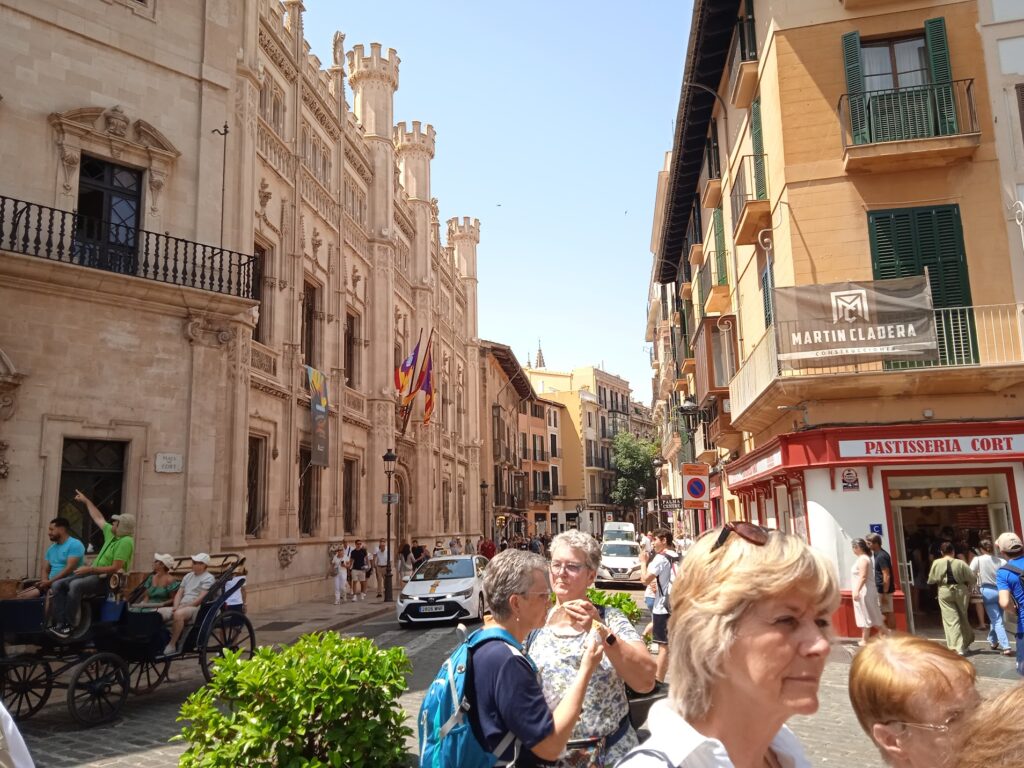 12.6.2025 Palma de Mallorca/Spanien. Um 9.00 ist unsere Kabine geräumt und wir verlassen das Schiff. Holen unseren Koffer aus der Terminal-Halle und marschieren zu unserem Bus, der uns vor der Ablieferung am Flughafen noch zu einem kleinen Ausflug in Mallorca bringt.